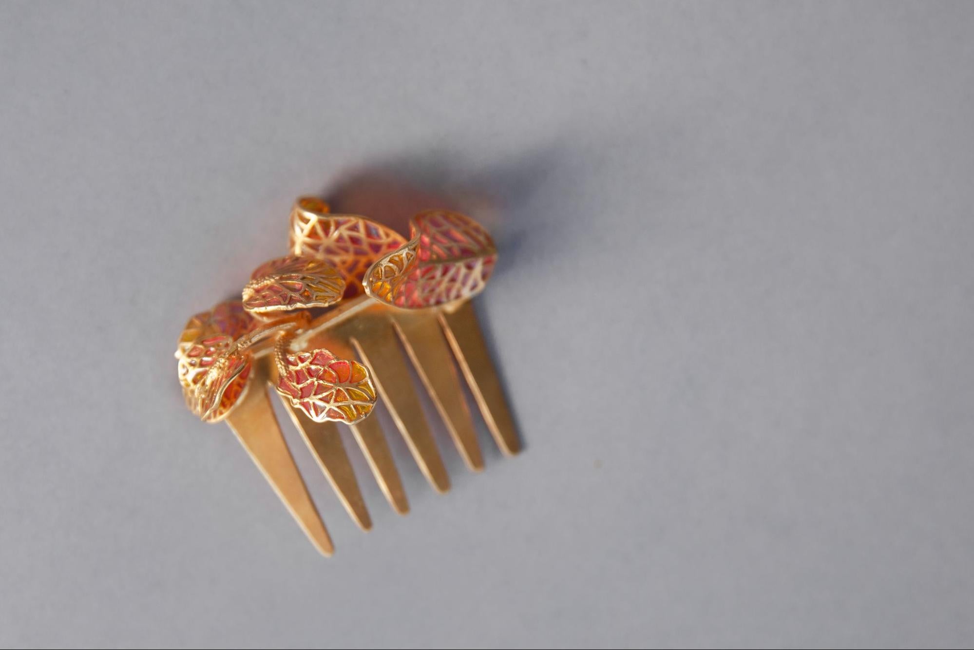 Accessories are no longer limited to adornments for the neck and ears. Brides are increasingly choosing to sport a bare neck with a heavy lehenga. Instead of weighty necklaces, brides are wearing stunning hand accessories such as the Blume Hathphool. Intricate hairstyles are embellished with gorgeous hair accessories like AZGA’s Orchid Hair Comb, a fretwork and enamel representation of a blooming garden. Bridal accessories are evolving greatly, and there are multiple ways women can style themselves to reflect their personality and tastes.