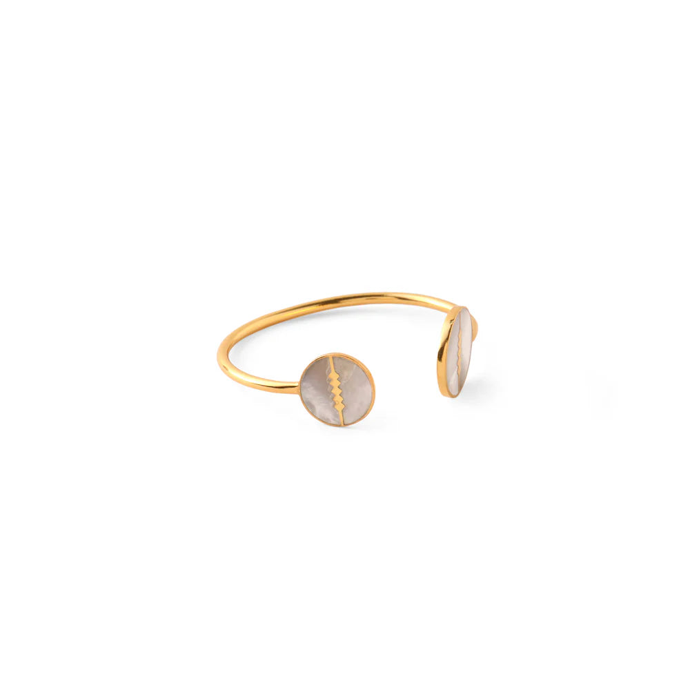 Don’t sleep on this gorgeous Mother of Pearl bangle by AZGA. Made in high-quality brass and coated in lustrous gold, the bangle is a must-have for all fashion-forward women. The accessory strikes a perfect balance between minimalism and statement-making and can be worn on its own or stacked with other gold-toned bangles.