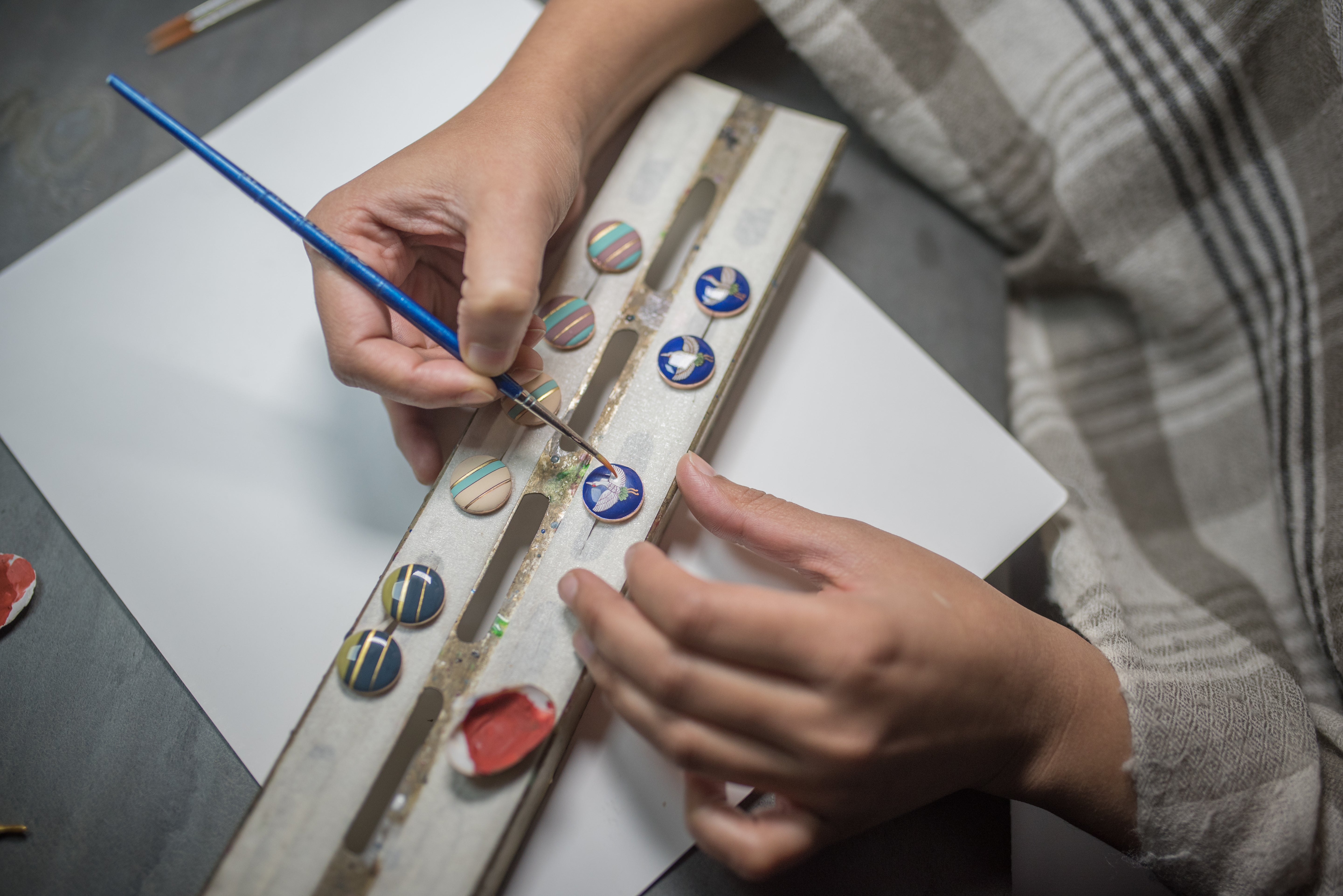 Each piece is completely handmade and the mother of pearl is inlaid.